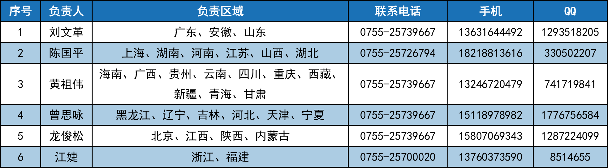 各省負責人聯系方式